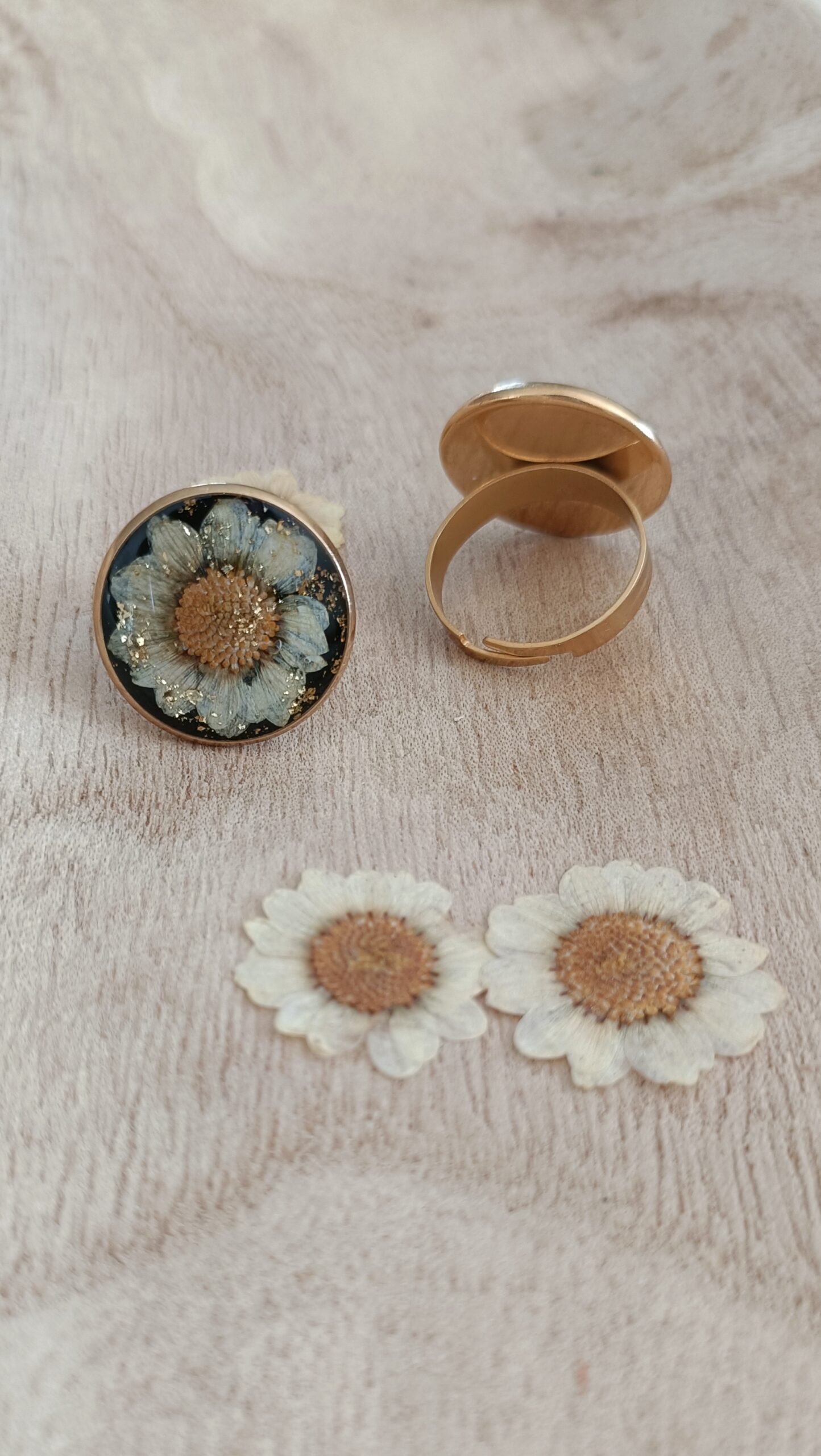Pendentif en acier inoxydable doré, 22 mm, fleurs naturelles, résine haute qualité, paillettes dorées.